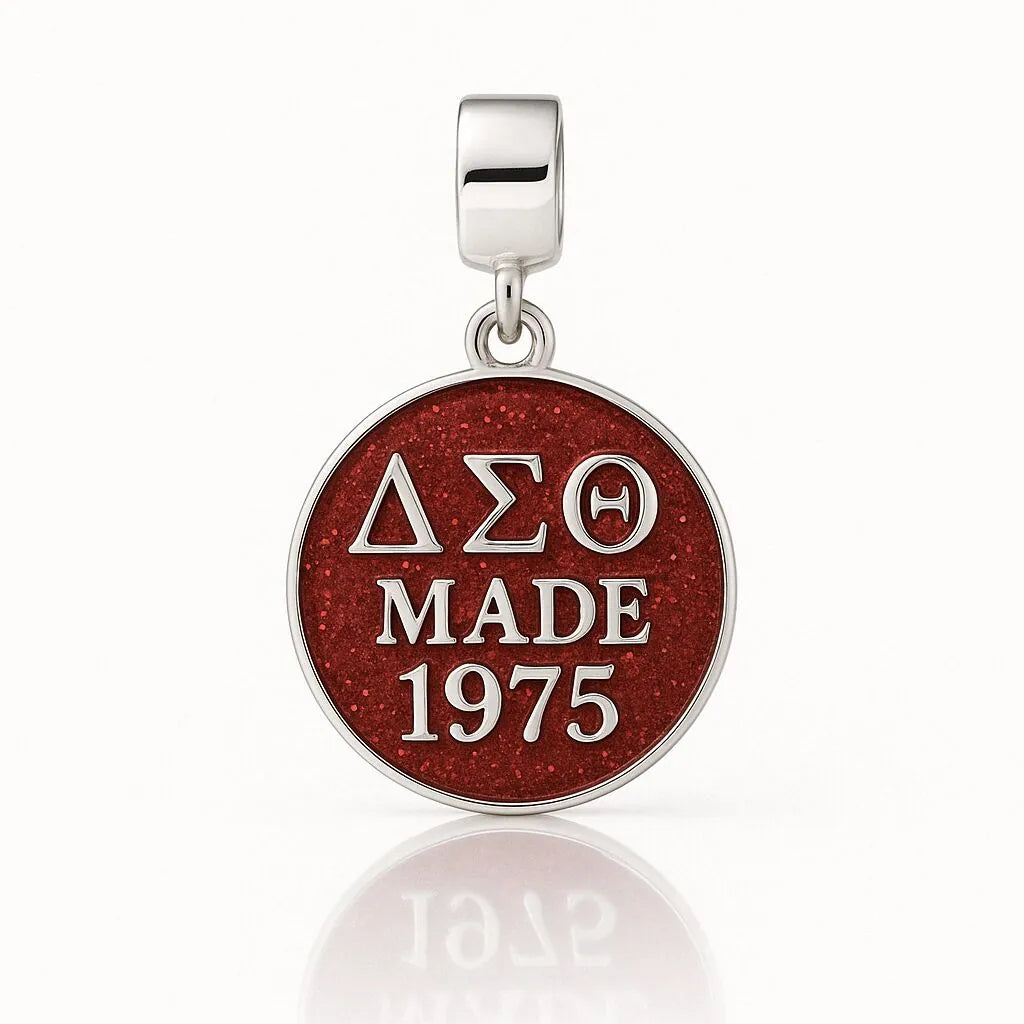 This elegant piece features our distinctive crimson and cream design with bold "ΔΣΘ MADE 1975" lettering, proudly commemorating your initiation into the same prestigious sisterhood as luminaries like Shirley Chisholm, Barbara Jordan, and Dorothy Height. More than just jewelry, this charm serves as your tangible connection to a profound legacy of scholarship, sisterhood, and service.