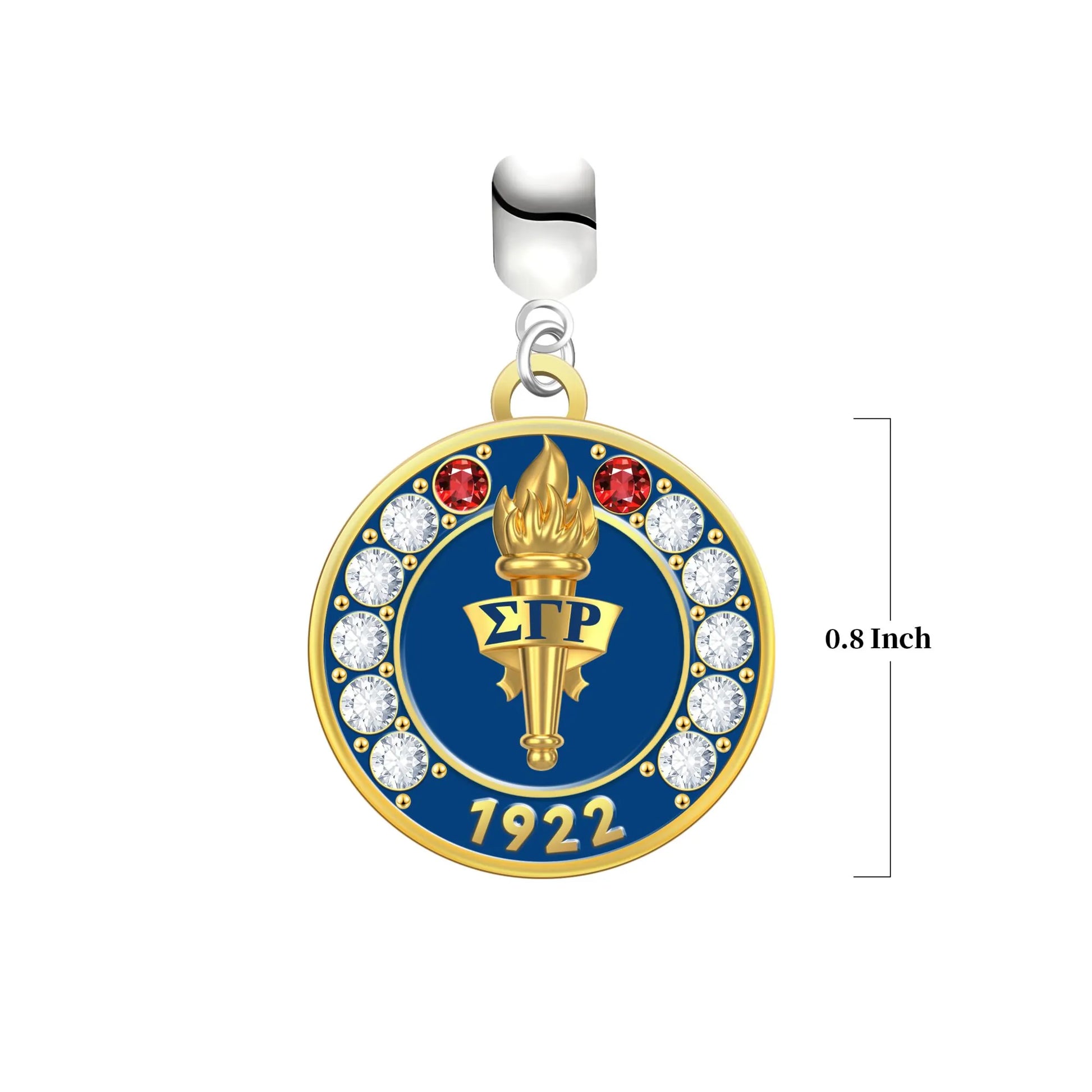 At the heart of the design is the torch symbol, gleaming in radiant gold, symbolizing the light of knowledge and leadership that the sorority has carried forward for generations. Encircling the torch are 10 Pearls and 2 Rubies representing Sigma Gamma Rho’s enduring legacy.