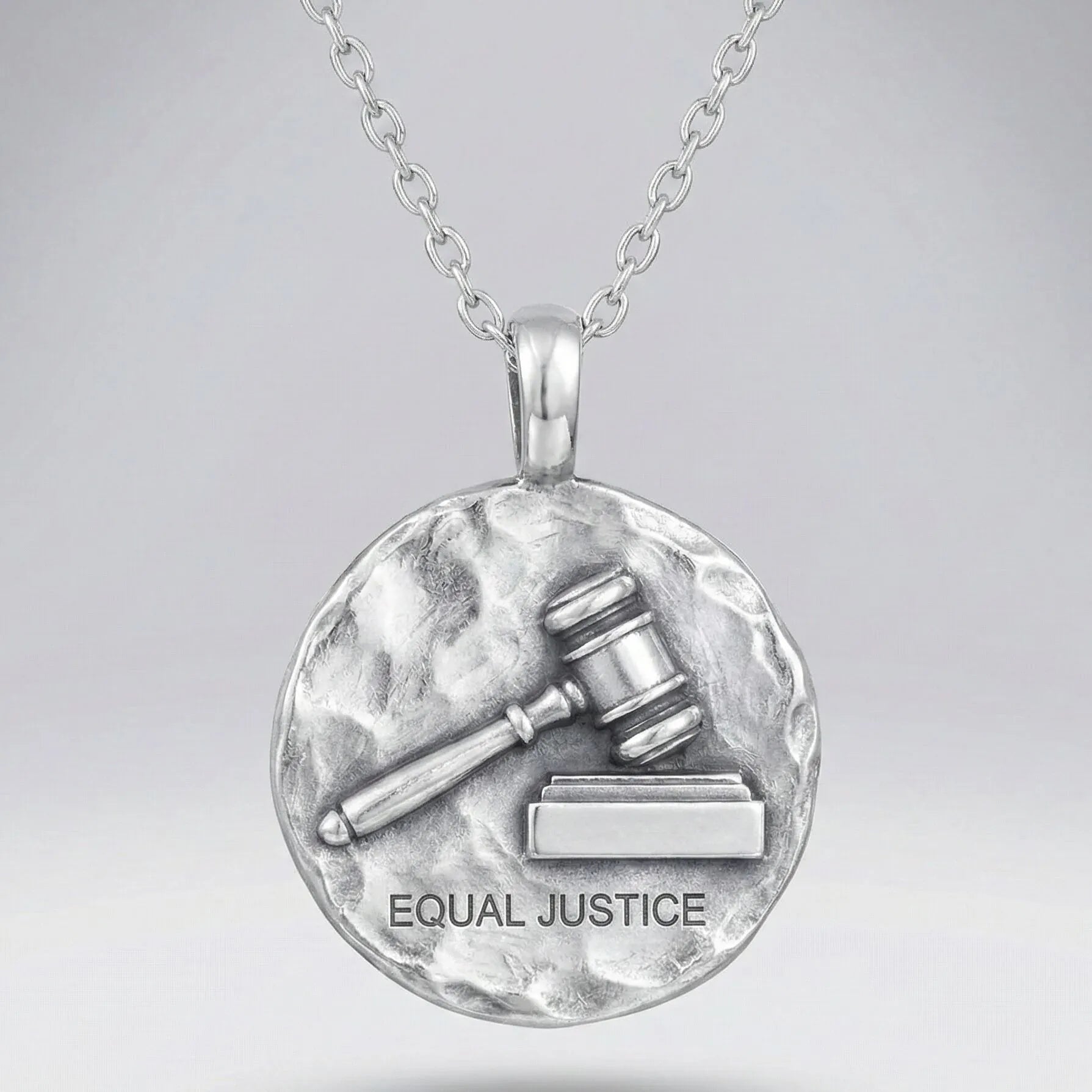 Set on a softly hammered textured background that adds depth and light reflection, this necklace blends meaningful symbolism with timeless craftsmanship. Designed as a wearable tribute to legal excellence and cultural legacy, it’s ideal for attorneys, law students, educators, and those who value justice-centered heritage jewelry.